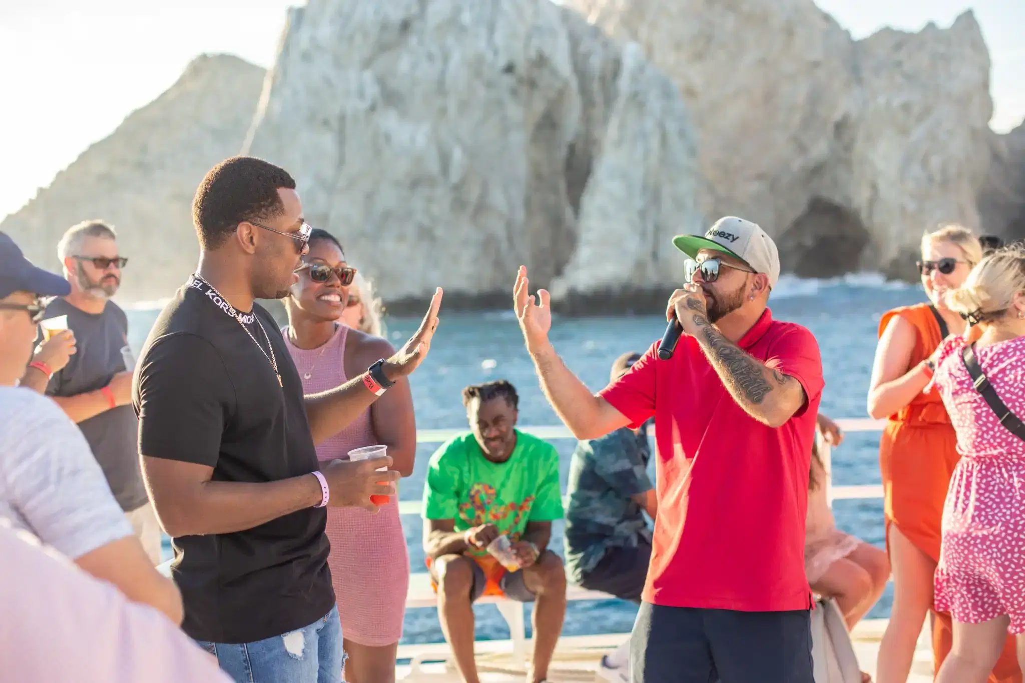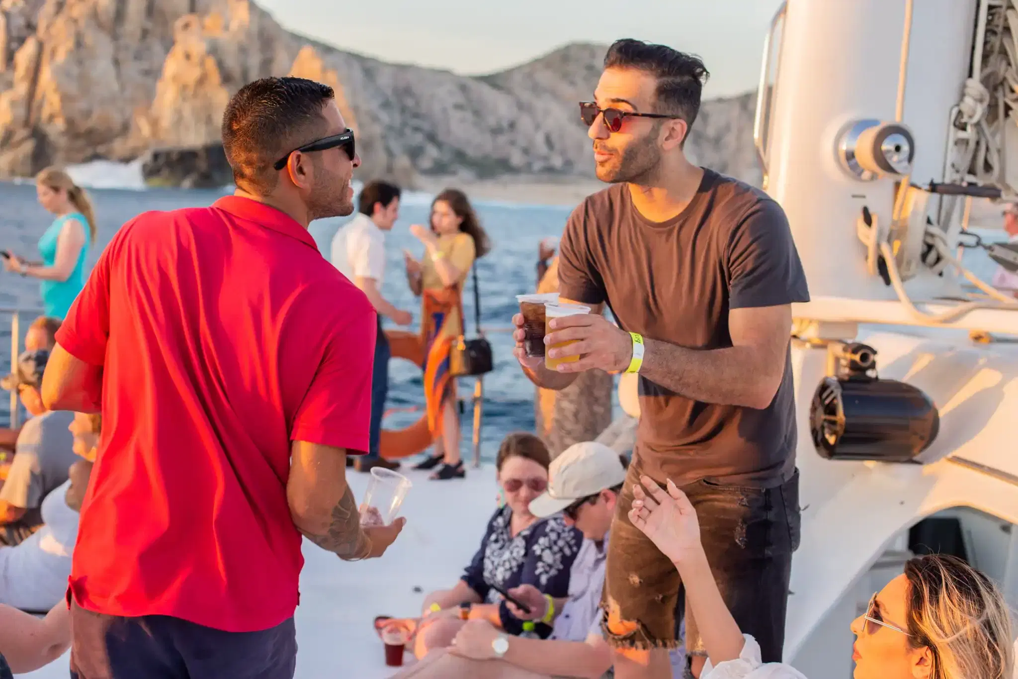 Vive una experiencia única en Los Cabos a bordo de Pez Gato Party Cruise, un tour de dos horas diseñado especialmente para quienes buscan disfrutar de un ambiente de fiesta. El recorrido comienza zarpando desde la Marina de Cabo San Lucas, visitando lugares icónicos como la Playa del Amor, El Arco y la colonia de lobos marinos, para después continuar por las aguas del Pacífico y el Mar de Cortés, regalándote vistas espectaculares durante todo el paseo. A bordo podrás disfrutar de barra libre nacional, snacks ligeros, música y fiesta mientras contemplas el atardecer. Este tour es exclusivo para mayores de 18 años, ya que la atmósfera dependerá de los pasajeros que se encuentren a bordo: puede ser tranquila y relajada o bien subir de tono y convertirse en una verdadera fiesta (¡incluso con twerking!). Ya sea que prefieras relajarte con una bebida en mano o dejarte llevar por el ambiente.