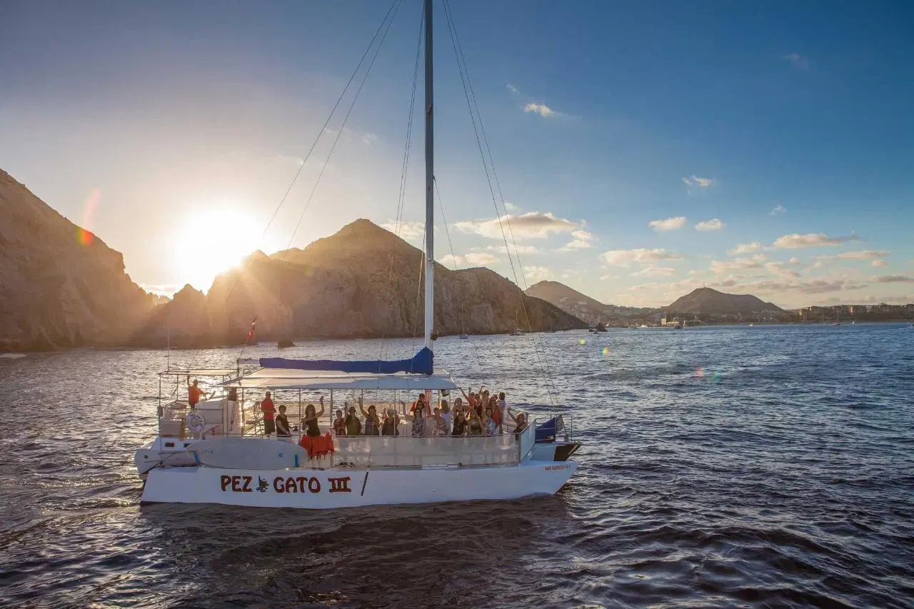 Al visitar Los Cabos, ningunas vacaciones están completas sin vivir la experiencia a bordo de un barco de Pez Gato. Cada día zarpamos con excursiones únicas que combinan aventura, naturaleza y diversión: desde el emocionante Whale Watching Tour, el refrescante Snorkel Cruise y el clásico Original Sunset Cruise, hasta las experiencias más sofisticadas como el Tropicat Jazz & Wine Tour o la inolvidable fiesta con cena a bordo del Cabo Mar Dinner Cruise.